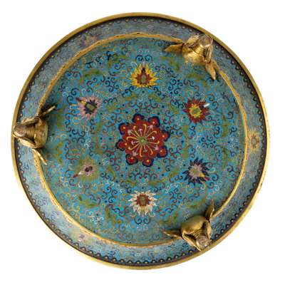清 乾隆年製款 銅胎掐絲琺瑯纏枝蓮紋龍鳳紋三足象首大爐