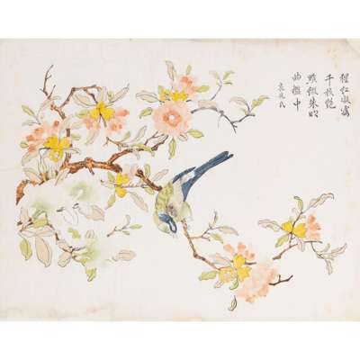 Although rare in the market, the prints presented in this lot can be compared to highly similar examples in the collection of the British Museum. For the 'arbutus and praying mantis', dated to the Qing dynasty, c.1735-c.1750, see museum no. 1906,1128,0.14. A related example, depicting pomegranates and praying mantis, offered at Sungari Beijing, 6-7 June 2019, lot 8664; For the 'pomegranate, magnolia and bird', similarly dated, see British Museum no. 1906,1128,0.6; For a similar example of the 'Antiquities', compare to museum no. 1906,1128,0.22. Other related examples, similarly depicting an arrangement of antiquities in different fashions, see museum nos. 1906,1128,0.24; 1906,1128,0.23 and 1906,1128,0.25.