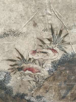 清 顧見龍款 《長壽仙芝》紙本設色 鏡框
