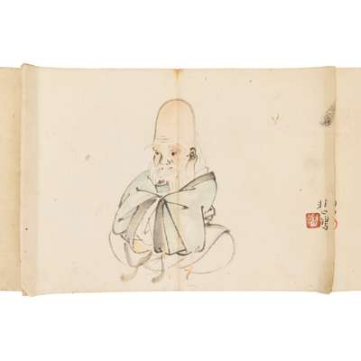 ink and colour on papers, bound in two albums; one album with eleven works, the other nine, beginning of the same album inscribed with a poem and signed Jiang Biwei (1899-1978), most individual works signed and or sealed, dated to the winter of Ding Si year, corresponding to 1917AD