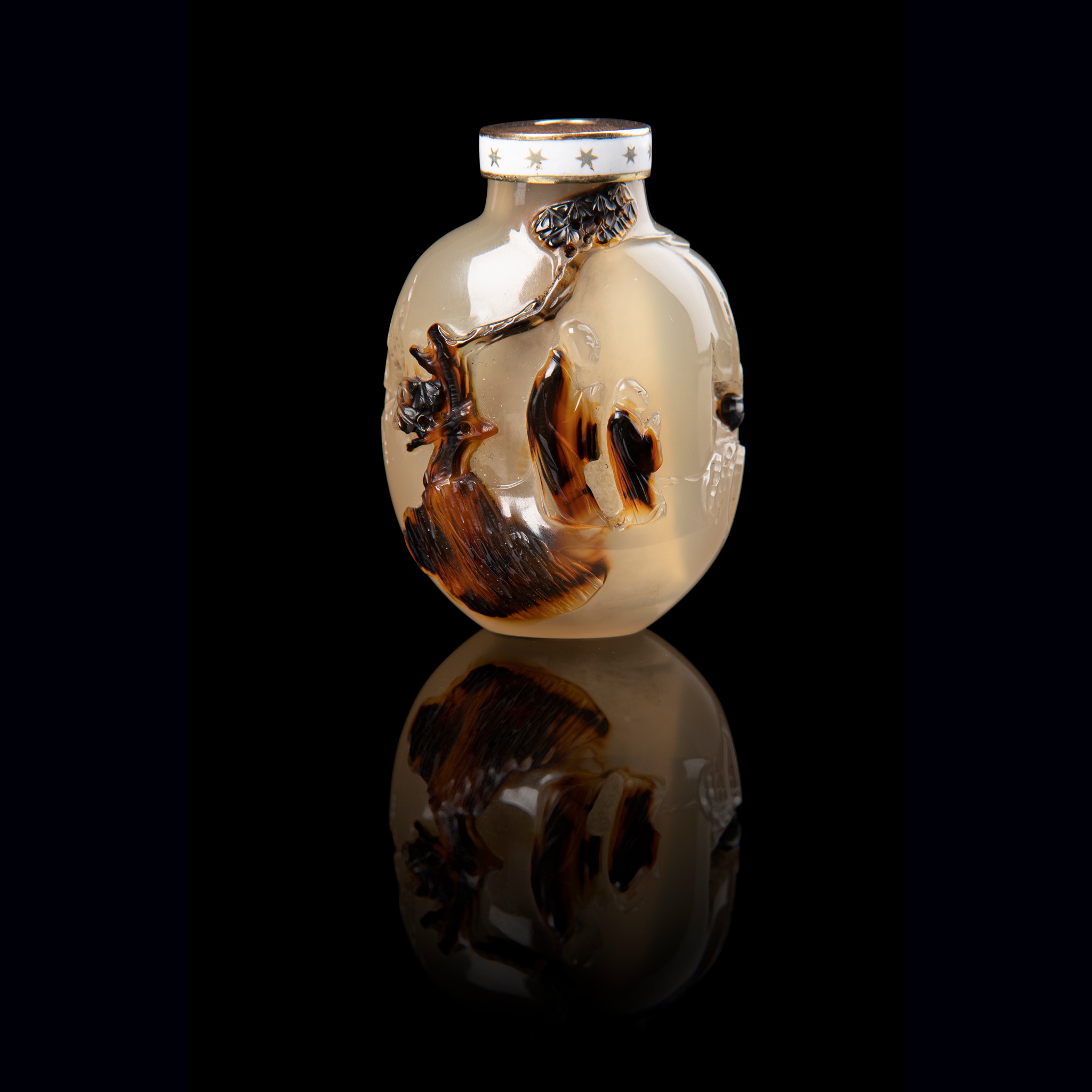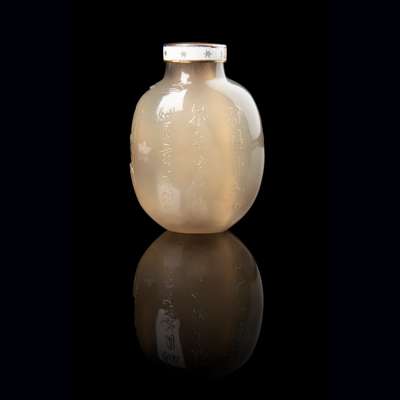 清 瑪瑙僧人題詩鼻烟壺 後加琺瑯彩及金製口緣