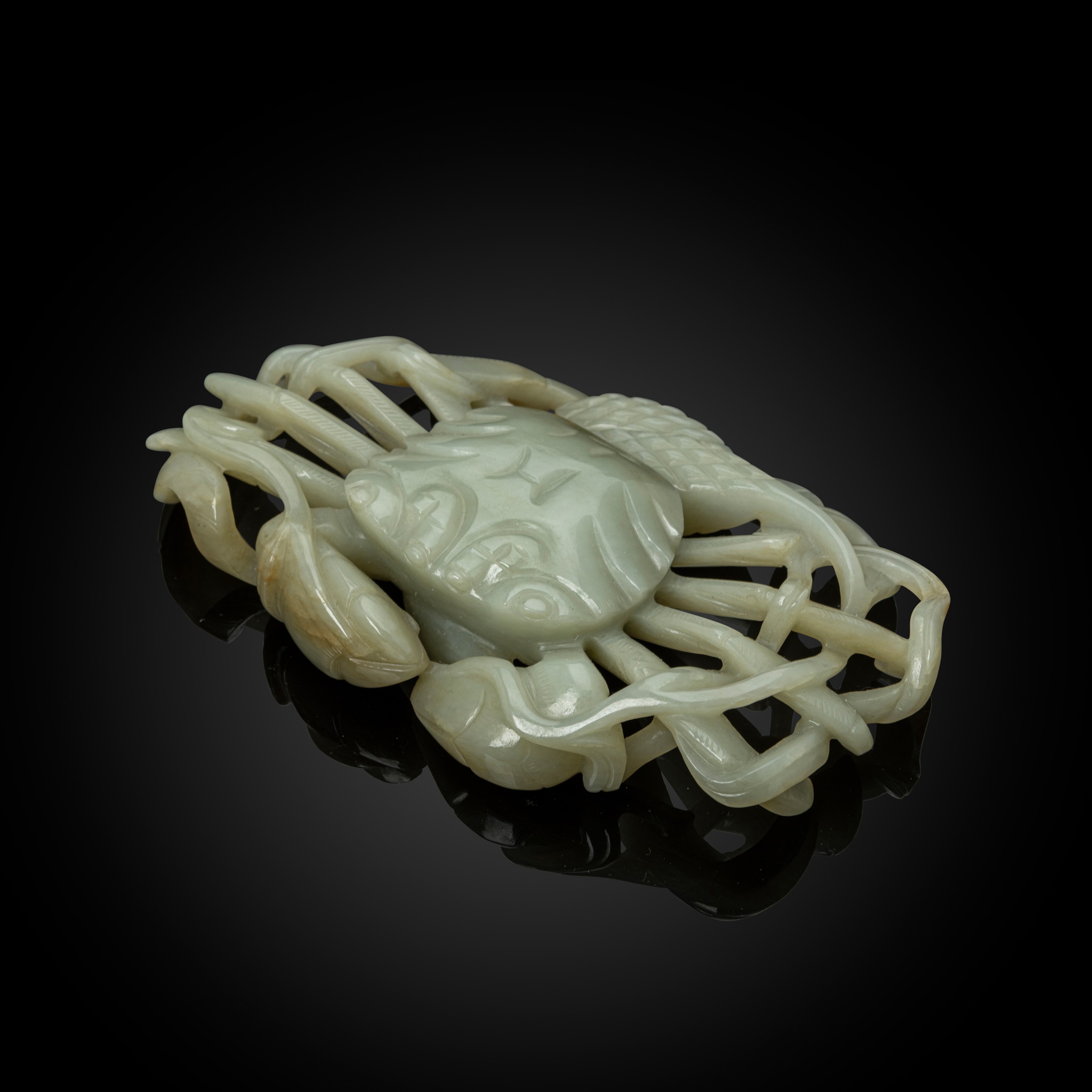 Note: a closely comparable 18th-century celadon jade crab from the Ezekiel Collection, slightly larger in size and similar in design and motifs, was offered at Sotheby's London, 3 Nov 2021, lot 51; another 18th-century jade carving of a crab is in the collection of the Metropolitan Museum of Art, New York, accession number: 02.18.377.