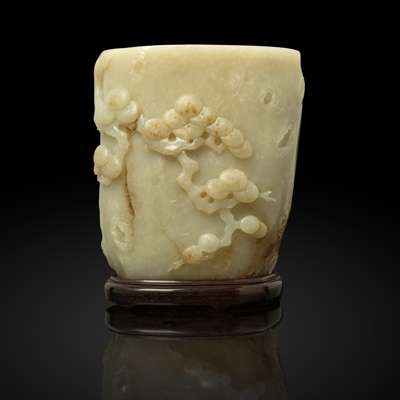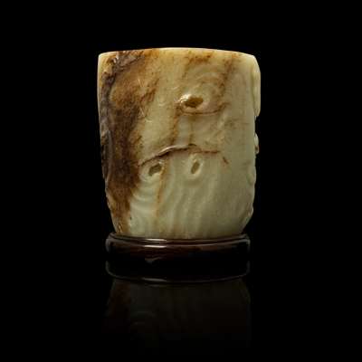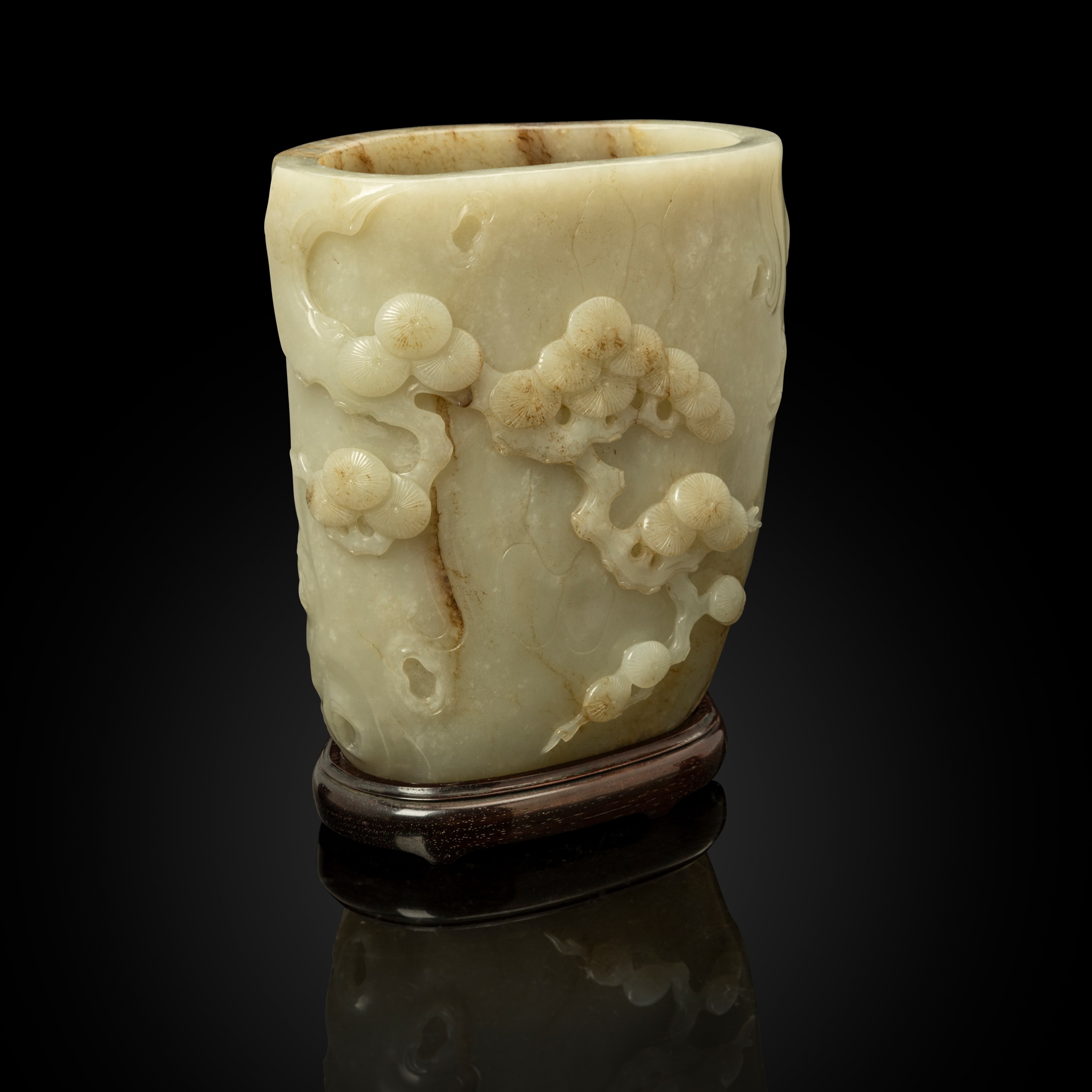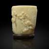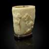 WHITE JADE WITH RUSSET SKIN 'PINE TREE' BRUSH POT