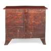 the crossbanded top over four long graduated drawers above a shaped apron and raised on French bracket feet