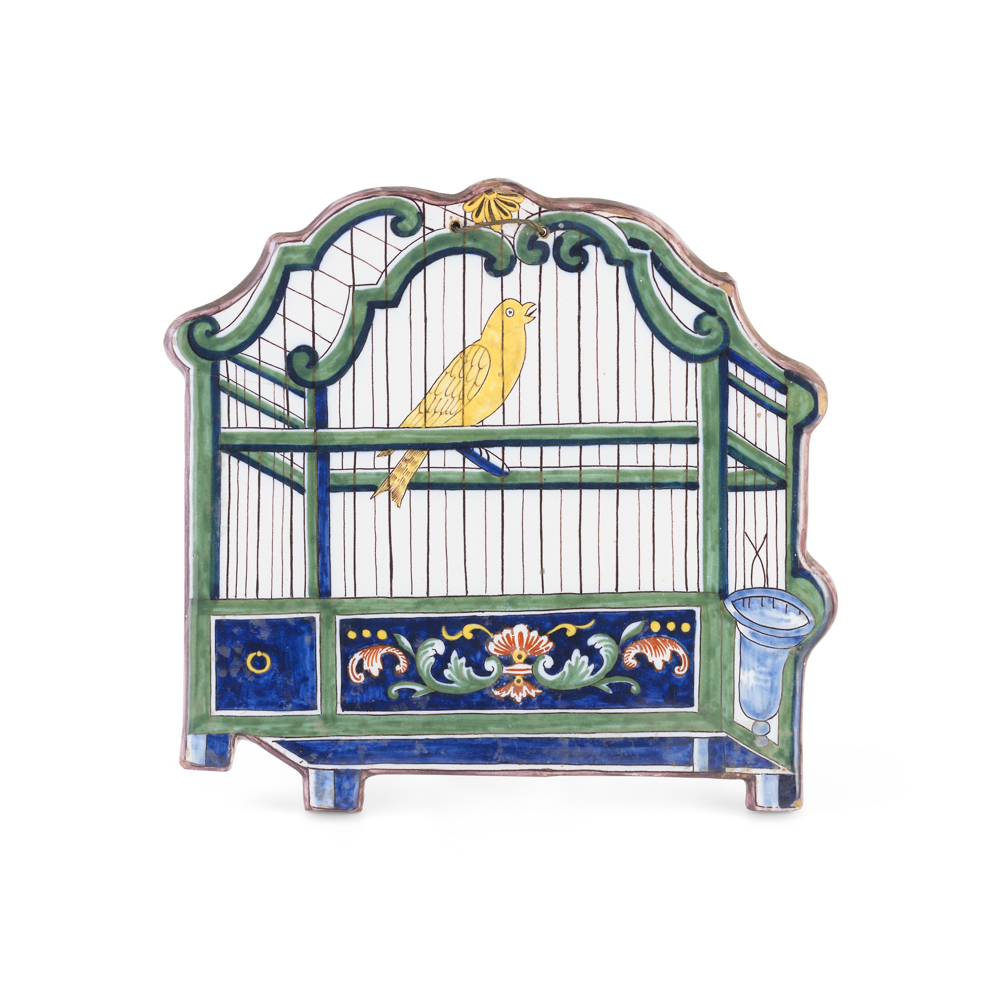 DELFT POLYCHROME TROMPE L'OEIL BIRD CAGE PLAQUE