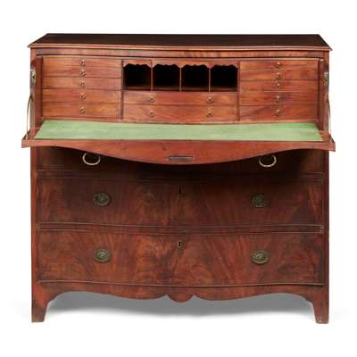 GEORGE III MAHOGANY SERPENTINE SECRETAIRE CHEST OF DRAWERS