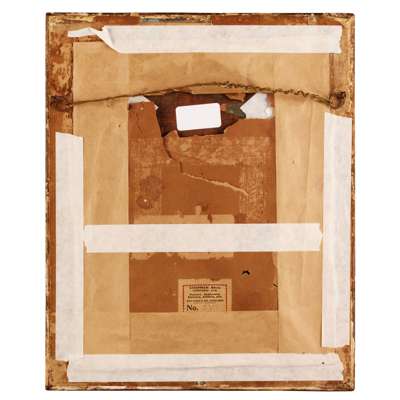 watercolour on card, oval, depicting a young man seated on a mule with a basket of vegetables, his companion seated on a donkey with a basket of flowers, in period gilt and gesso frames
