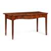 the crossbanded top above a matchbook veneered frieze, raised on square tapered legs outlined with stringing