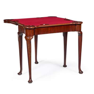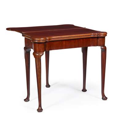 GEORGE II MAHOGANY TRIPLE FOLD TEA/ CARD TABLE