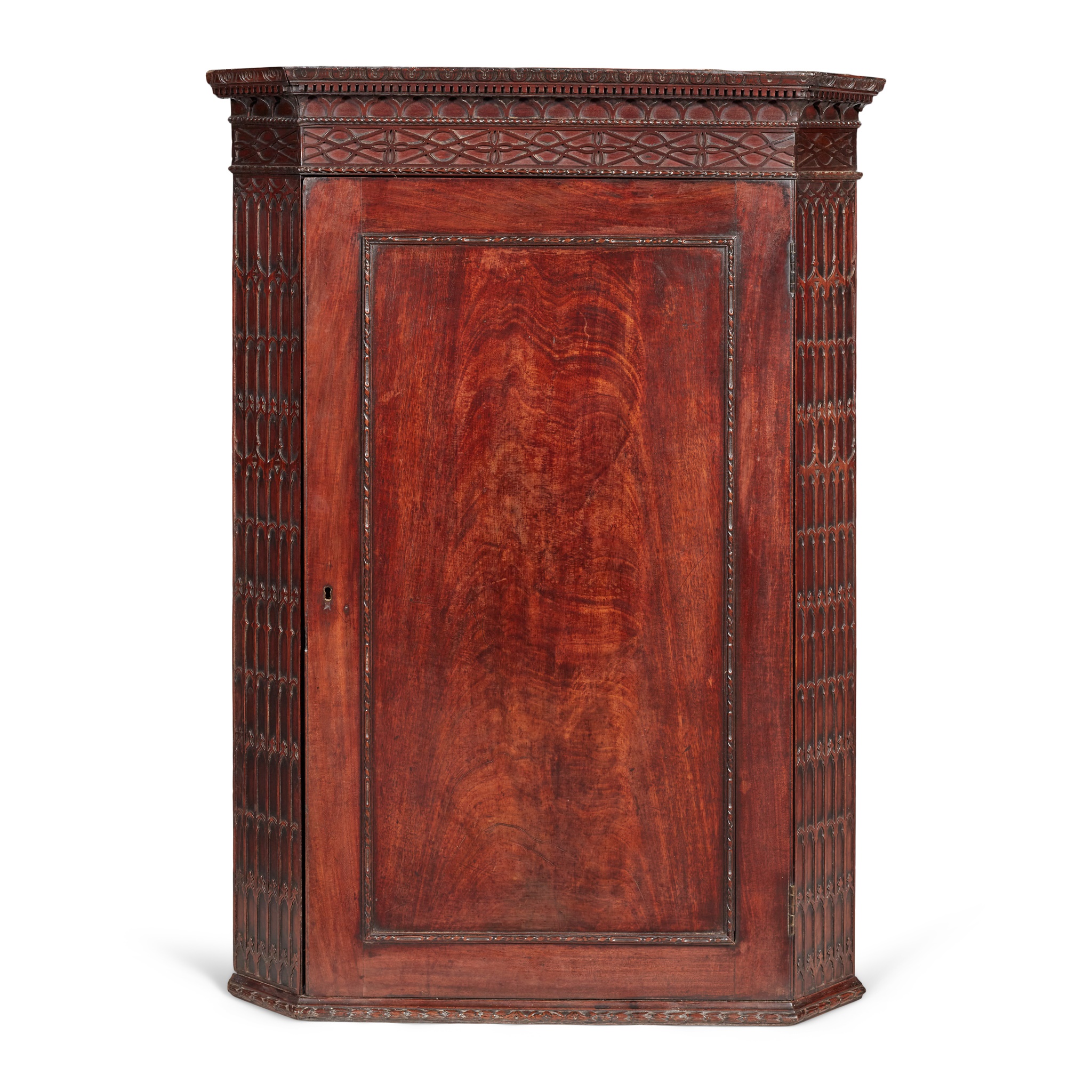 GEORGE III 'CHIPPENDALE GOTHIC' MAHOGANY HANGING CORNER CABINET