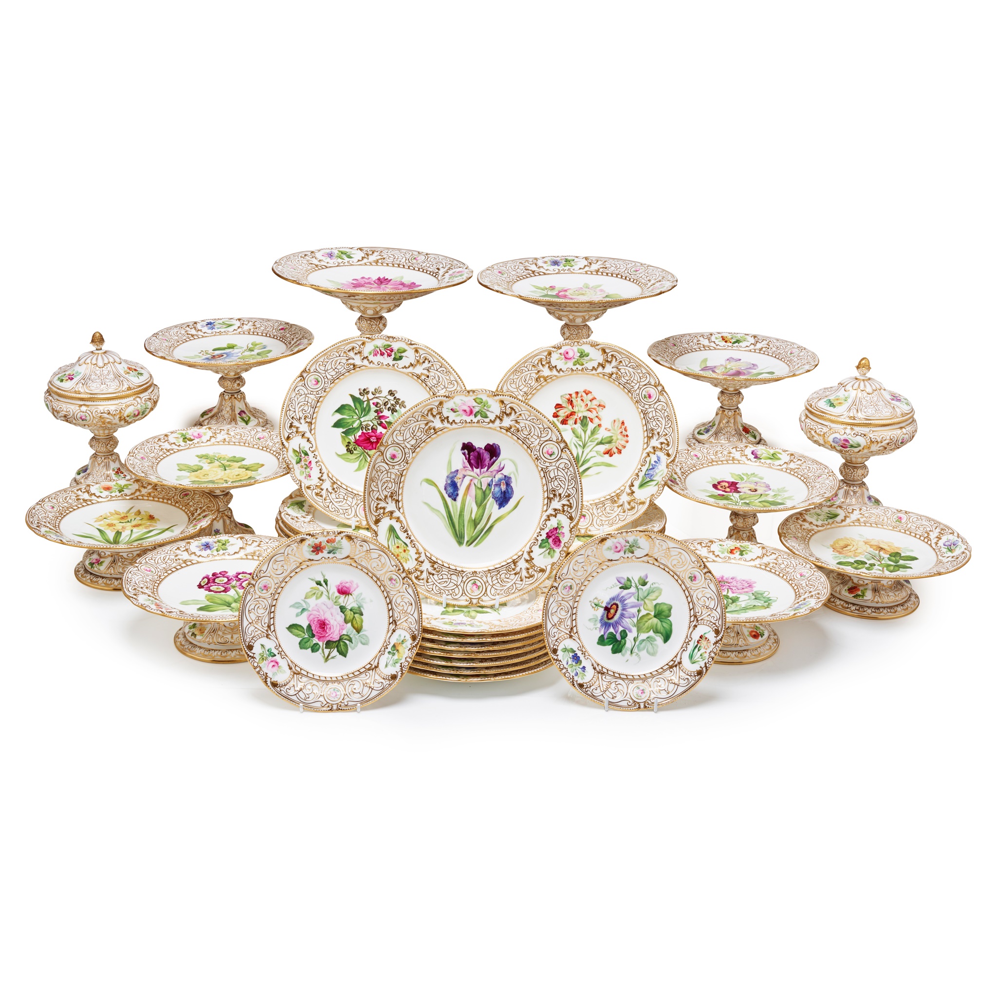 EXTENSIVE ENGLISH PORCELAIN BOTANICAL DESSERT SERVICE