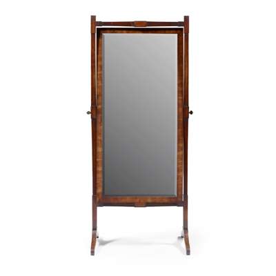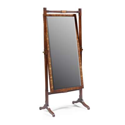REGENCY MAHOGANY AND EBONY CHEVAL MIRROR