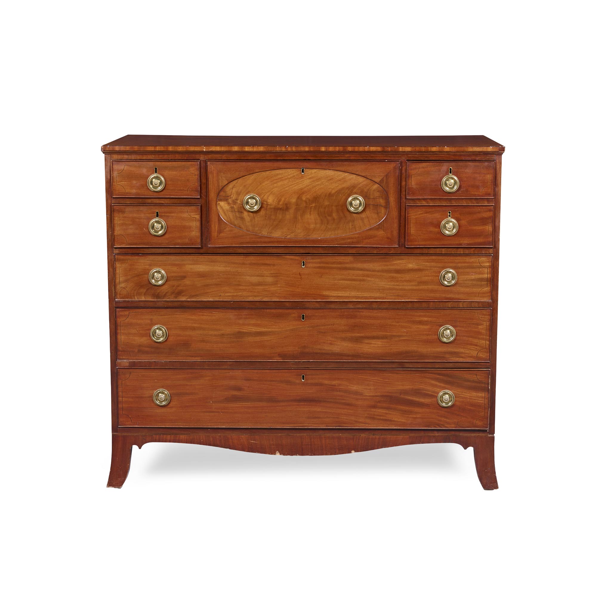 LATE GEORGE III MAHOGANY SECRETAIRE CHEST OF DRAWERS Y