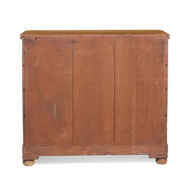 with four long graduated drawers with turned knobs, on a plinth raised on squat bun feet