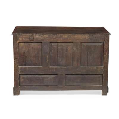 GEORGIAN OAK AND MAHOGANY THREE-PANEL MULE CHEST
