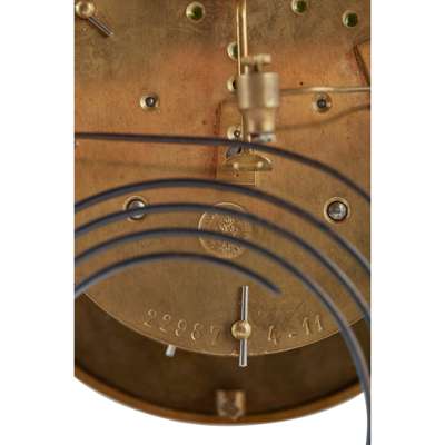 the circular cream enamel dial with Roman numbers and painted with garlands, in a case with bevelled glass panels and a mercury-filled compensating pendulum, the twin-chain movement stamped '22987 4-11' striking a gong