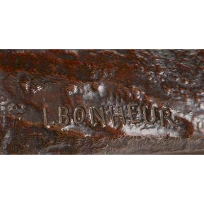 bronze, dark brown patina, signed on the base I. BONHEUR