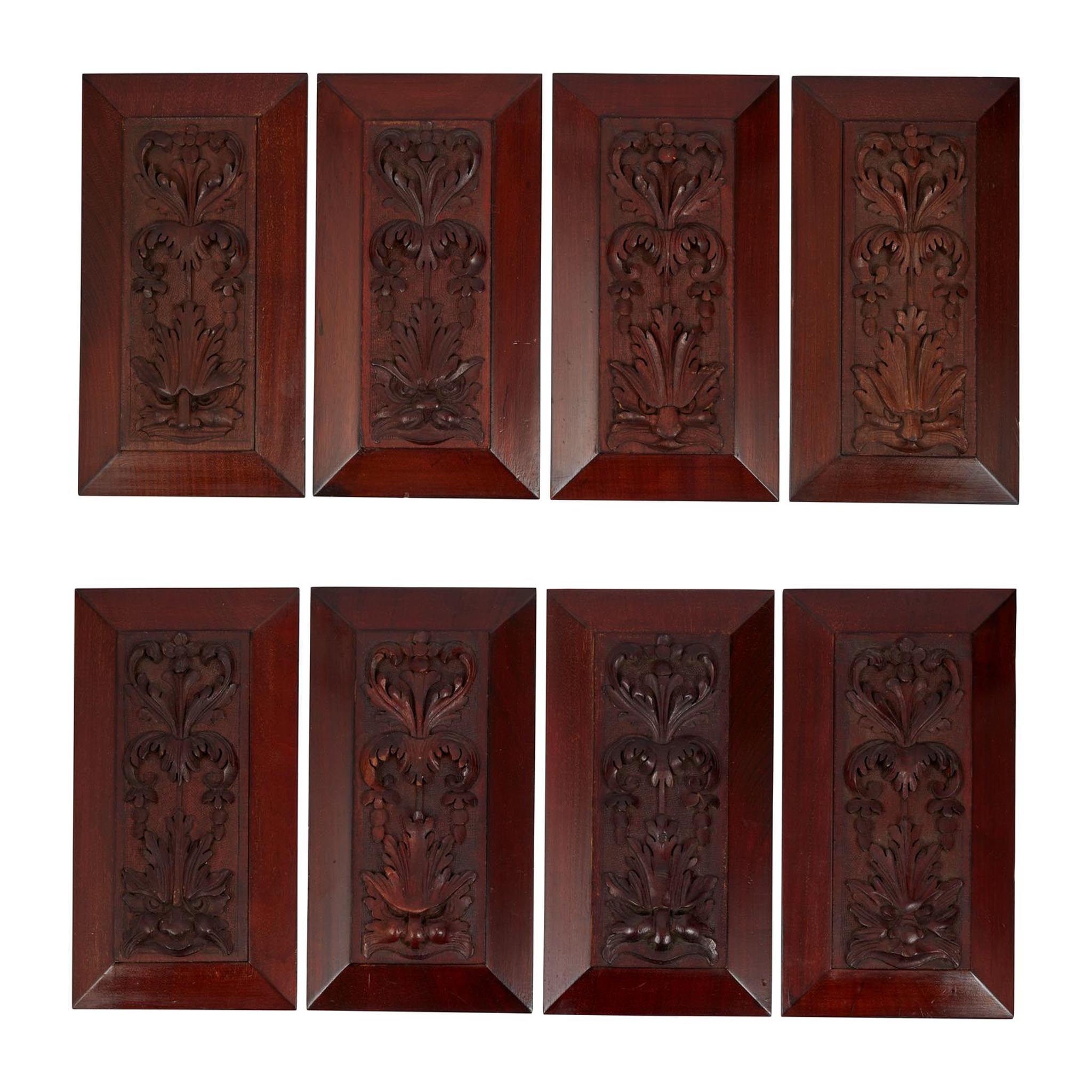 SET OF EIGHT CARVED MAHOGANY PANELS