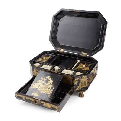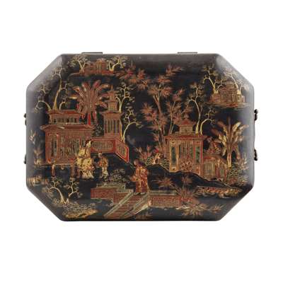 CHINESE EXPORT BLACK LACQUER WORK BOX Y
