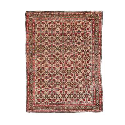 the cream field with allover small rosette lattice pattern, within narrow olive green border