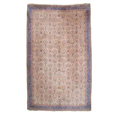 the camel field with allover palmette and foliate vine lattice pattern, within blue border