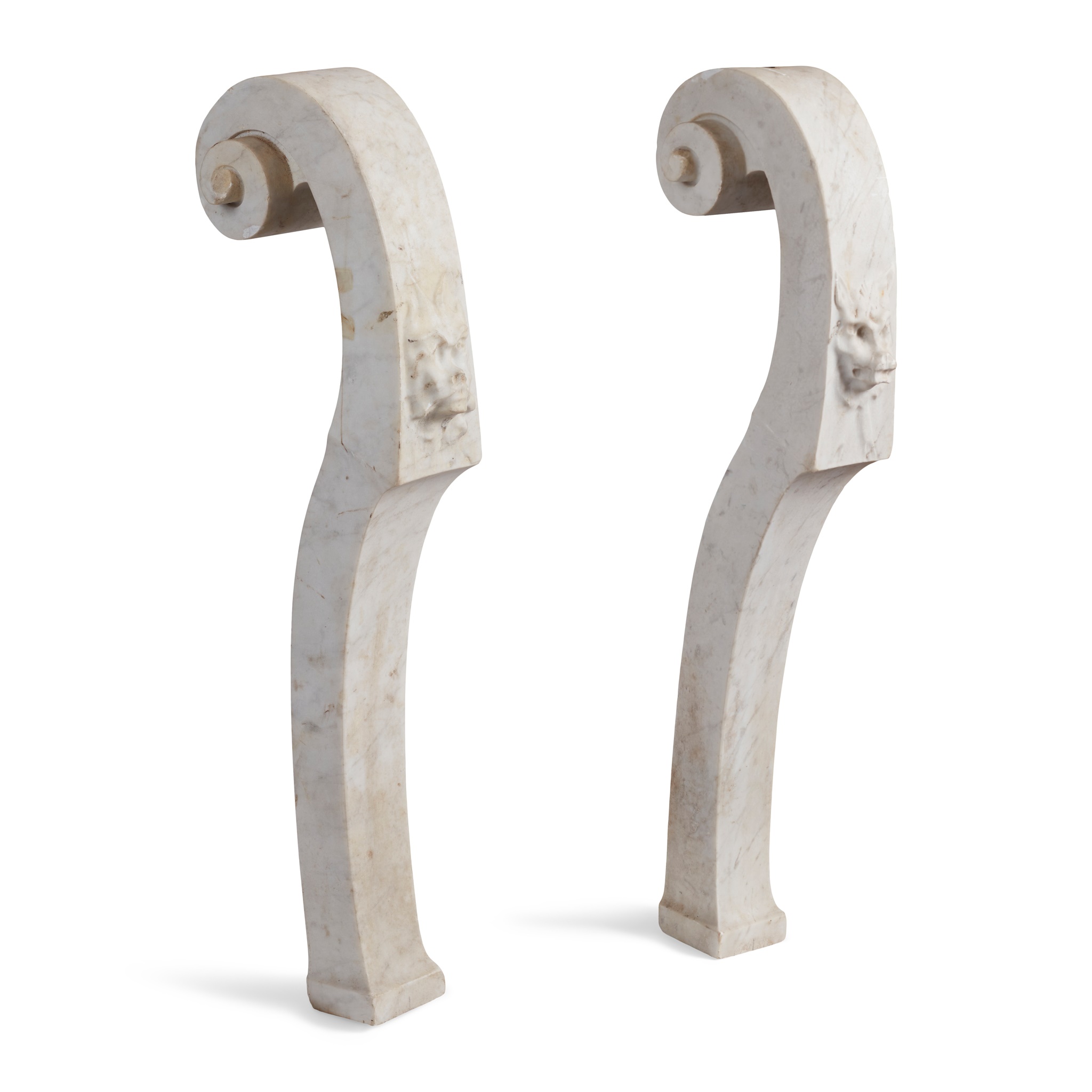 SET OF FOUR WHITE MARBLE VOLUTE SUPPORTS
