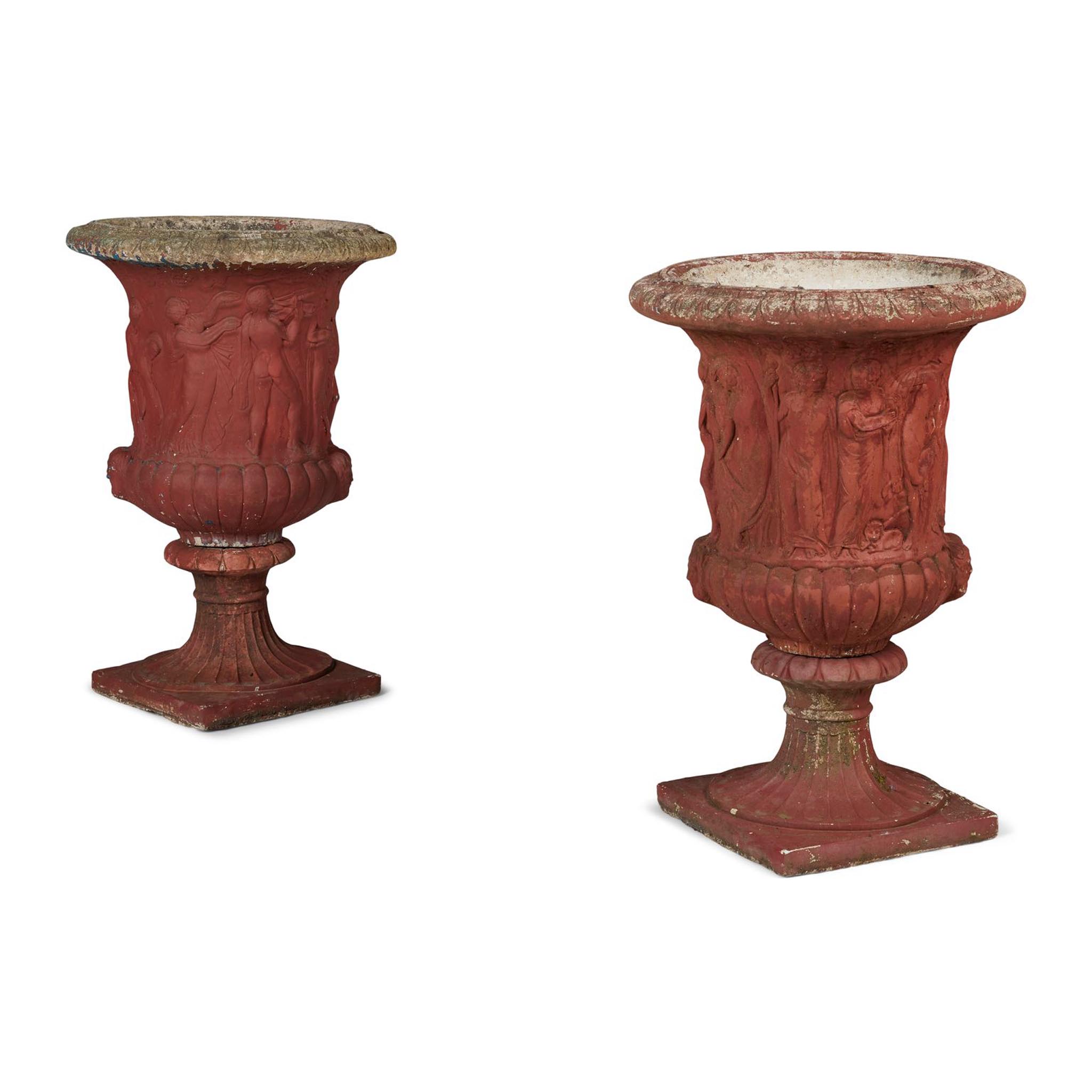 PAIR OF LARGE PAINTED COMPOSITION STONE URNS