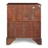 in two parts, the ebony and fruitwood strung top over four long graduated drawers, raised on bracket feet