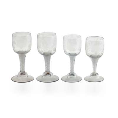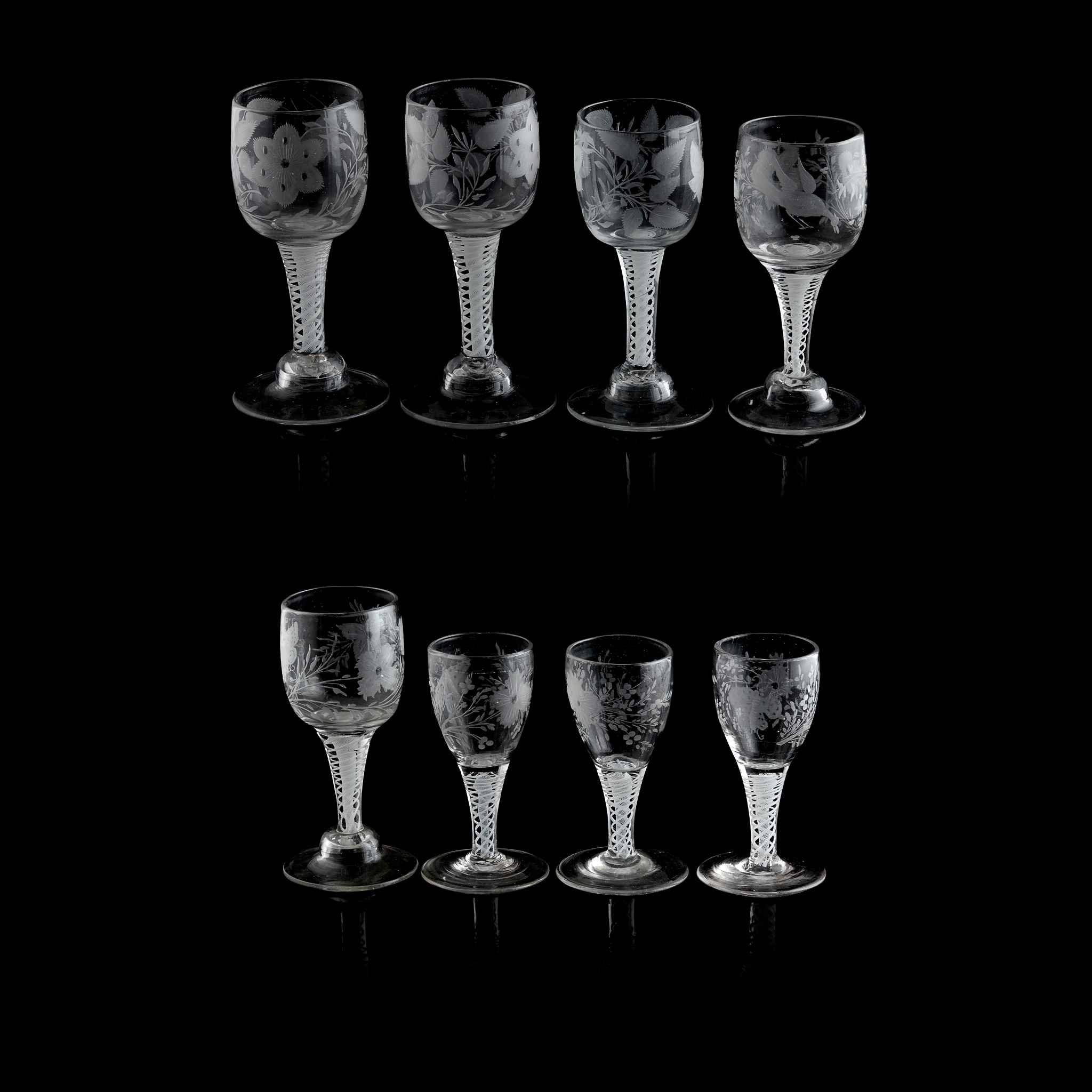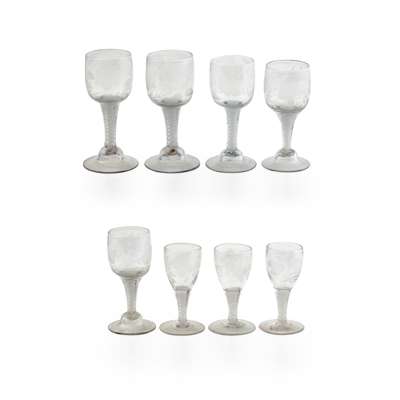 EIGHT DUTCH OPAQUE-TWIST STEM WINE GLASSES