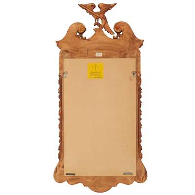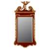 the rectangular mirror plate in a gilt moulded slip and mahogany frame with a swan neck pediment centred by a carved ho-ho bird