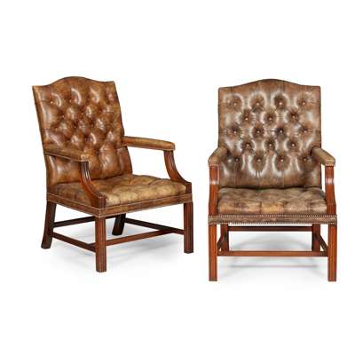 PAIR OF GEORGIAN STYLE LEATHER UPHOLSTERED LIBRARY ARMCHAIRS
