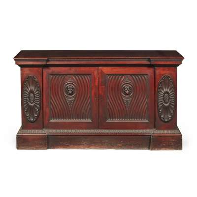 Note: The present cabinet, with its robustly carved panels with deep undulating fluting bears some similarites to a set of twelve gilt and painted stools made by John Linnell for Kedleston Hall for the 1st Lord Scarsdale. Other pieces by Linnell with the same deep fluting but to designs by Robert Adam, can be found on a pair of dining room urns and pedestals at Osterley Park, made for Robert Child in 1767.
