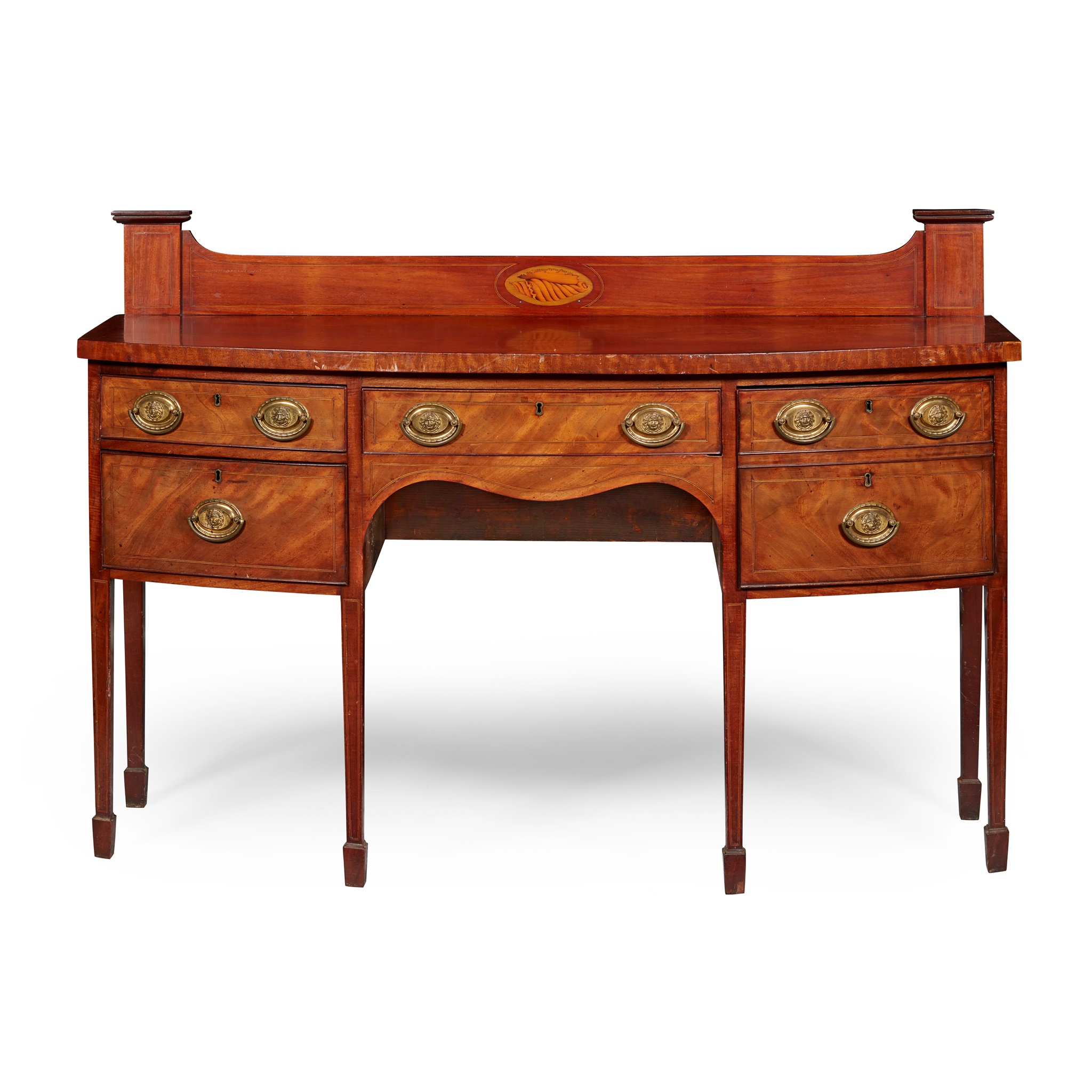 LATE GEORGE III MAHOGANY AND INLAID BOWFRONT SIDEBOARD