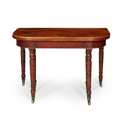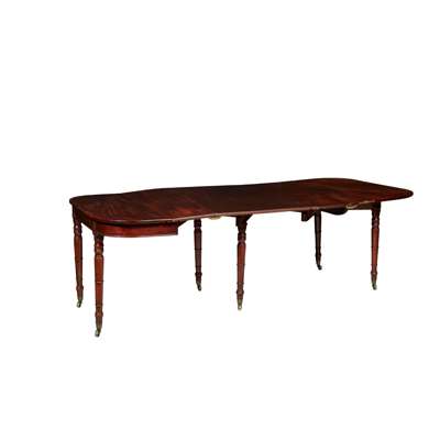 LATE GEORGE III MAHOGANY CONCERTINA ACTION FOLD-OVER DINING TABLE