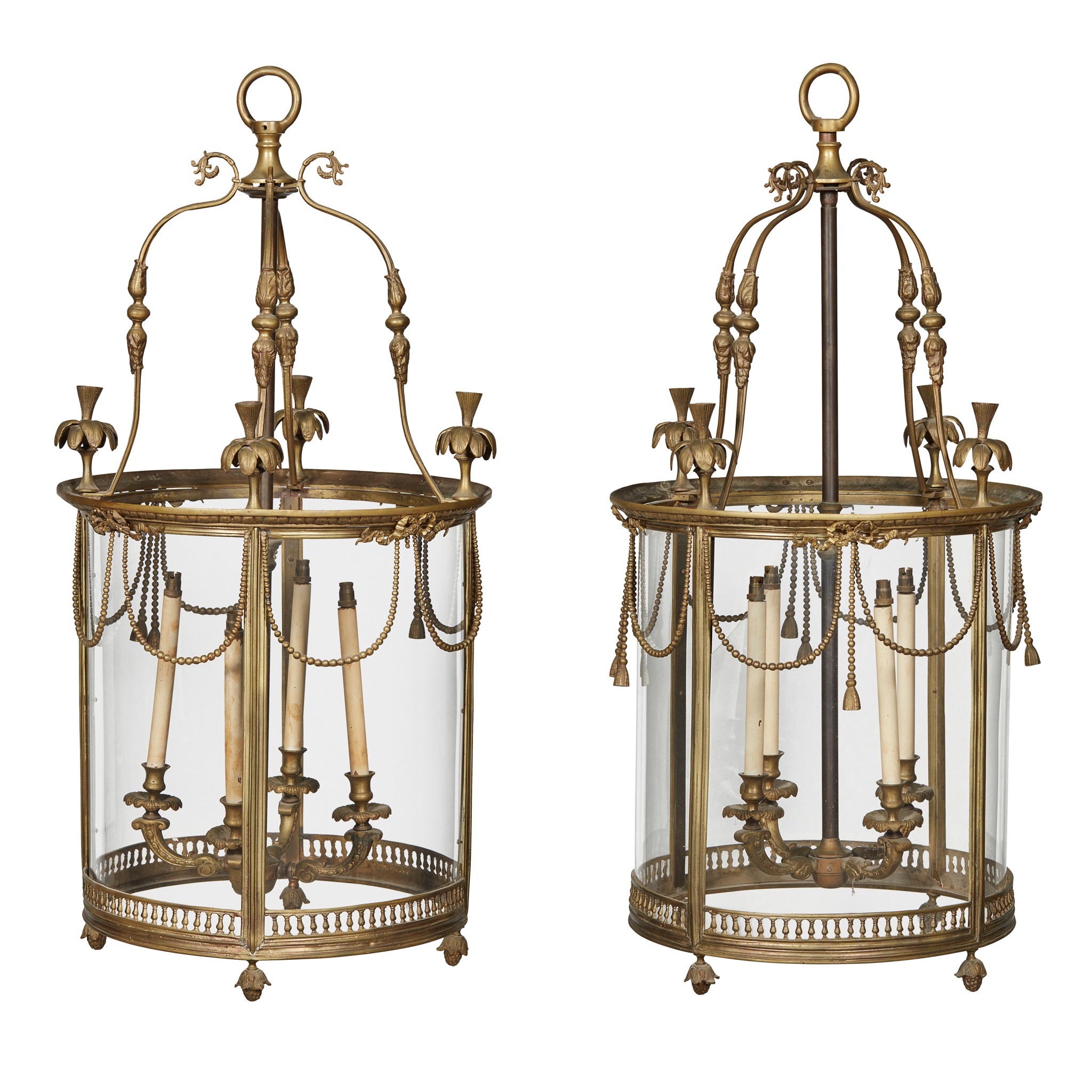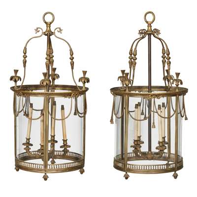 PAIR OF LARGE GEORGIAN STYLE BRASS HALL LANTERNS