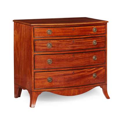 LATE GEORGE III SATINWOOD AND EBONISED BOWFRONT CHEST OF DRAWERS