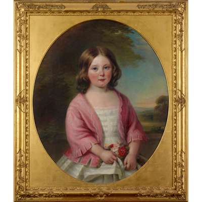HALF LENGTH PORTRAIT OF ALICE LUCY CAMPBELL SWINTON HOLDING A POSY OF FLOWERS