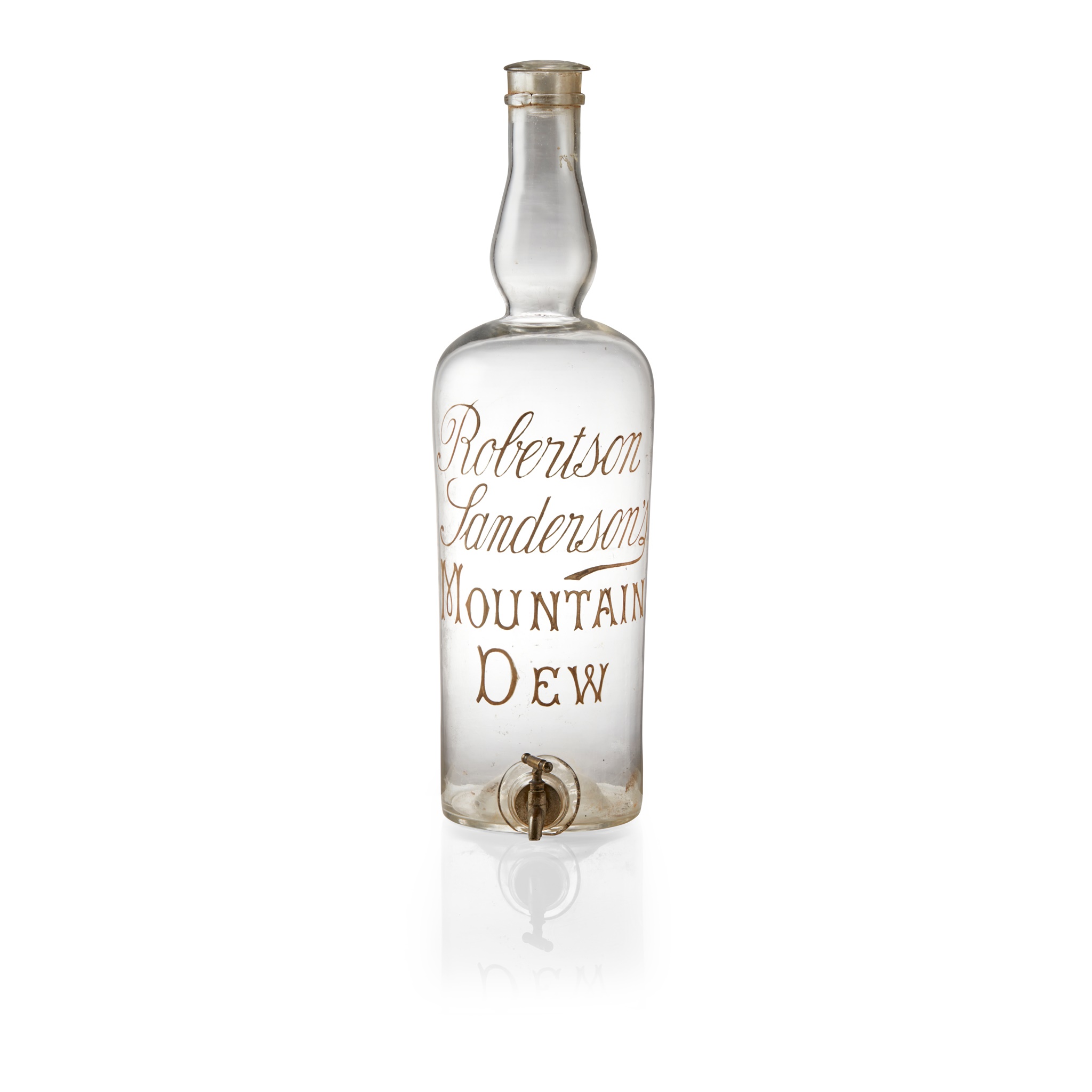 LARGE SCOTTISH GLASS 'MOUNTAIN DEW' WHISKY DISPENSER, ROBERTSON SANDERSON'S