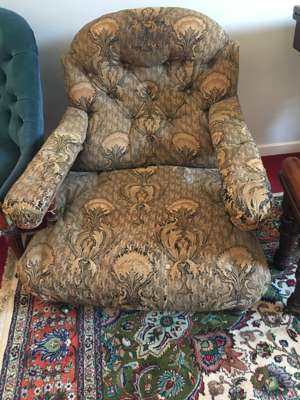 VICTORIAN BUTTON UPHOLSTERED OPEN ARMCHAIR