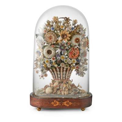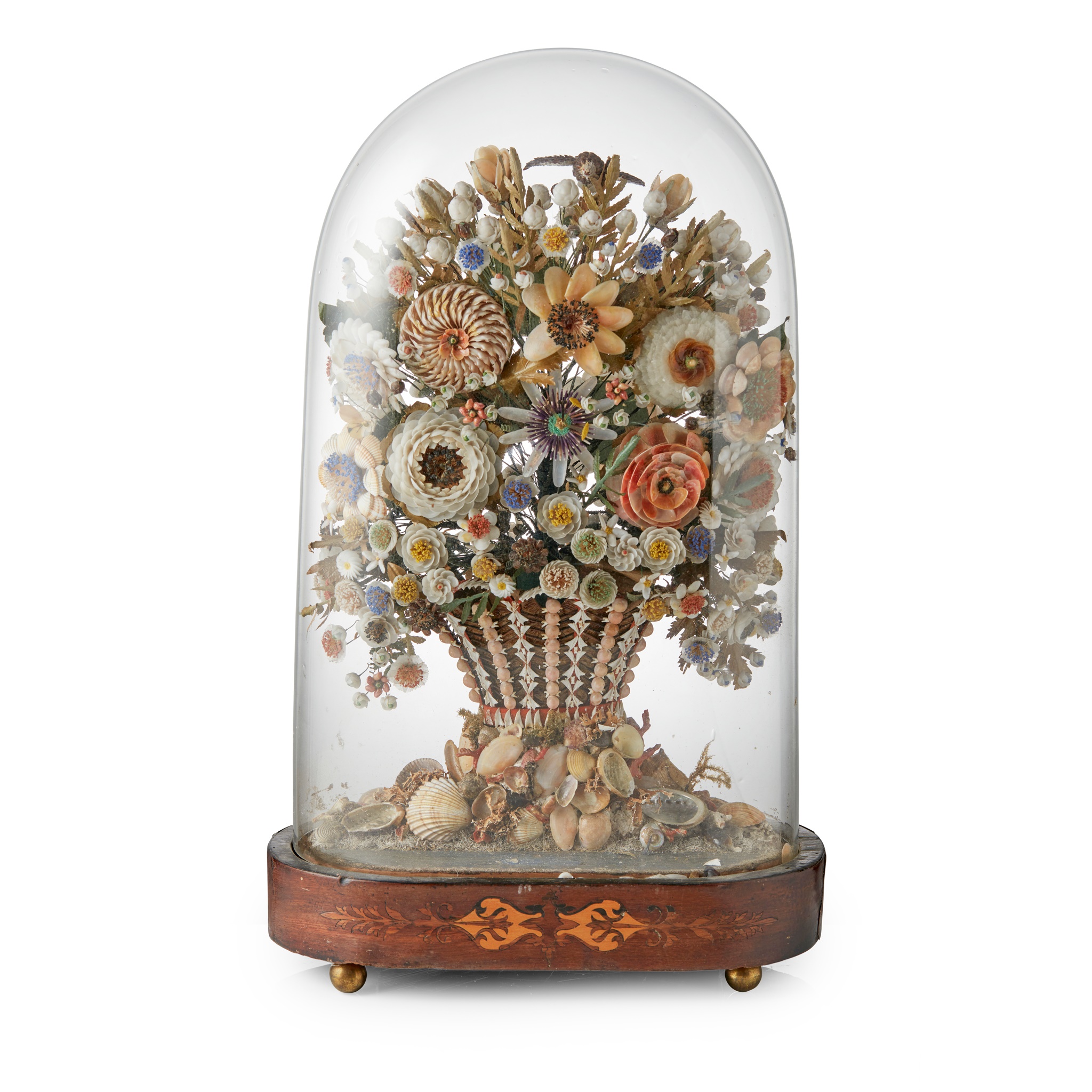 VICTORIAN SHELL-WORK BASKET BOUQUET