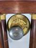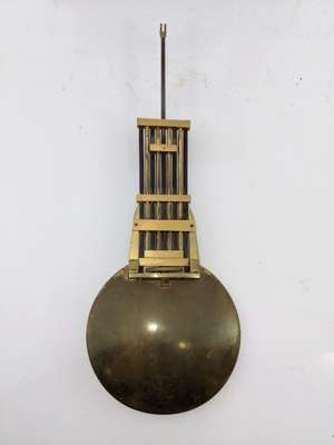 the white enamel dial with Roman numbers and engine turned centre enclosed by a band of roses, the eight-day cylinder movement with a bell strike and gridiron pendulum