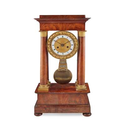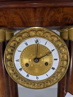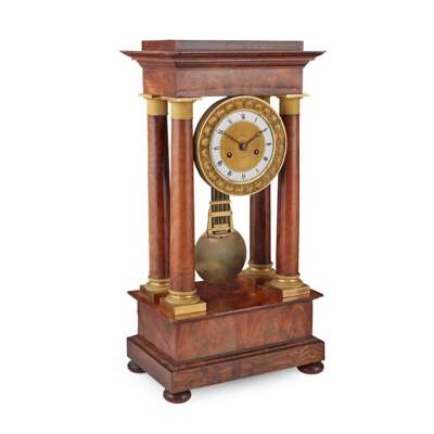 CHARLES X MAHOGANY AND GILT METAL PORTICO CLOCK