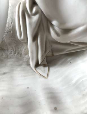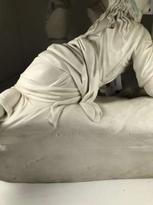depicting Ophelia, Oenone, and Lesbia, after W. C. Marshall, with impressed 'Copeland' marks and 'Crystal Palace Art Union'; together with a PARIANWARE FIGURE OF A WATER COLLECTOR, after William Boynton Kerr, impressed 'Kerr London 1857', 35cm long