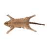 with flattened head and glass eyes, remnants of claws, on a purple felt backing