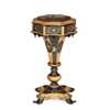VICTORIAN PAPIER MÂCHÉ, MOTHER-OF-PEARL AND PARCEL-GILT PEDESTAL WORKBOX