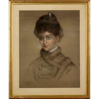 HALF LENGTH PORTRAIT OF A YOUNG WOMAN WITH FUR COLLAR