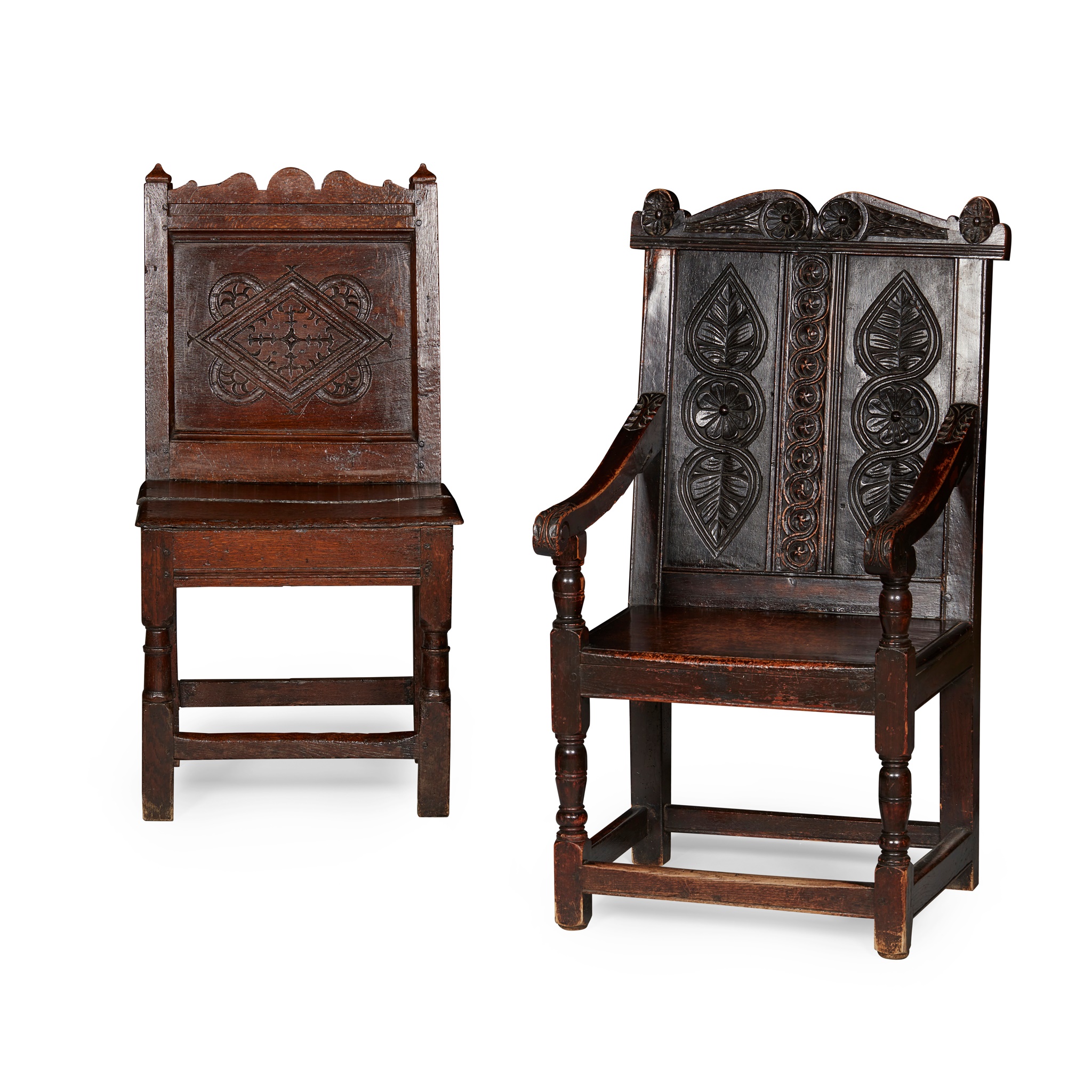 TWO EARLY OAK CHAIRS, YORKSHIRE