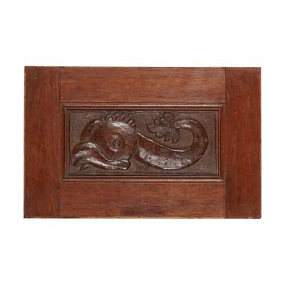PAIR OF CARVED OAK PANELS OF DOLPHINS
