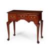 the top with a moulded edge and re-entrant corners, above three frieze drawers above a shaped apron, raised on pronounced cabriole legs ending in pad feet, with trade label for S. H. Jewell