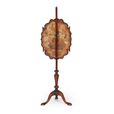 LATE GEORGE II WALNUT AND NEEDLEWORK POLE SCREEN
